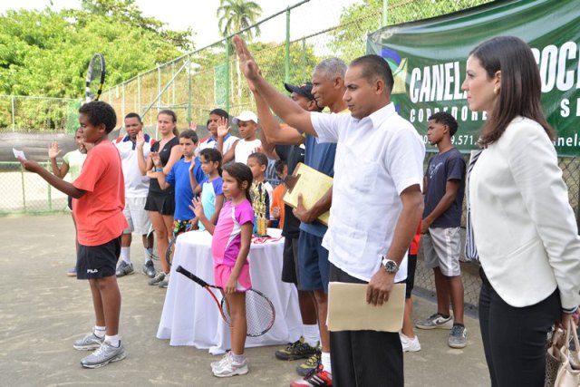 En la parte culminar de la ceremonia de inauguración, el joven tenista Cesar Garrido, pronunció el juramento deportivo, en tanto que el saque de honor estuvo a cargo del doctor Cesar Piantini y le recibió el licenciado Jannio Villanueva, padres de jugadores y personalidades destacadas de Puerto Plata.