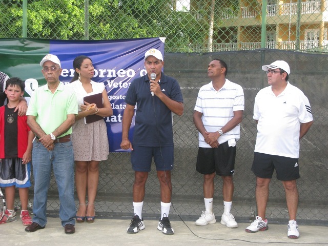 El lanzamiento del primer saque de la justa deportiva estuvo a cargo de Ramón González (Tito), propietario de José Luis, Plaza Supermercado y recibió el licenciado Gustavo Gómez, Vicepresidente de la Asociación de Tenis de Santiago.