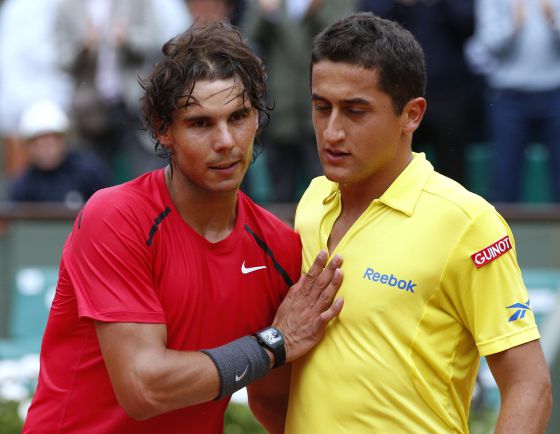 Primero, la tarde de Almagro bajo los cielos plomizos y el agua, que al comienzo de la tercera manga amenazan con suspender el partido. El número 13 mundial aplica lo aprendido a la vera de Juan Carlos Ferrero, en cuya academia se entrena. Mientras se queja de los lloros de una niña, demuestra que ha encontrado el justo punto intermedio. No apuesta por la explosividad de los viejos tiempos, ni se pierde en arranques de ira como entonces. Tira fuerte pero no al máximo de su tremenda potencia. Busca más los márgenes de seguridad que las líneas, para no perderse como en 2010, cuando en idéntica ronda y ante el mismo contrario se inclinó con un exceso de nobleza, de tiro en tiro, por jugar a pura fuerza. En 2012, Almagro tiene en el primer saque un seguro. En tierra, puede competir con los mejores porque es difícil descolocarle, moverle cuando coge la línea y desde ella tira. En París, claro, se encuentra con un problema: Nadal, que le escanea desde el minuto uno; que poco a poco va moviéndole y le desgasta las piernas; que en seguida, era previsible, identifica dónde está la diana, en qué lugar está la vía de agua.El mallorquín va desmontando poco a poco el hermoso revés de Almagro. En cada situación de aprieto, el campeón defensor, que solo ha cedido un break en todo el torneo, recurre al plan de siempre. Saque al revés. Irremediablemente, eso desplaza al murciano y provoca un fallo o le deja la pista abierta para que le remate su contrario.