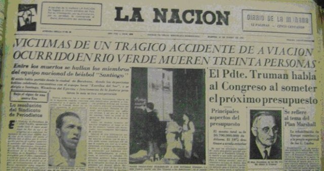 PUERTO PLATA.- Este viernes 11 de enero se cumplió el 63 aniversario del fatídico accidente aéreo acaecido en 1948 en la comunidad Río Verde, del municipio de Yamasá, de la provincia Monte Plata, donde perecieron 42 integrantes del equipo de béisbol representante de Santiago.